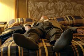 kalau yer pun nak tidur pakai stokin tukarlah dulu baju kerja tu dulu..